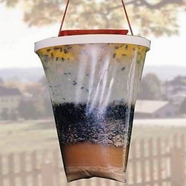 The Fly Trap is widely used indoors and outdoors. This trap is suited for a small household area with a moderate concentration of flies as below.